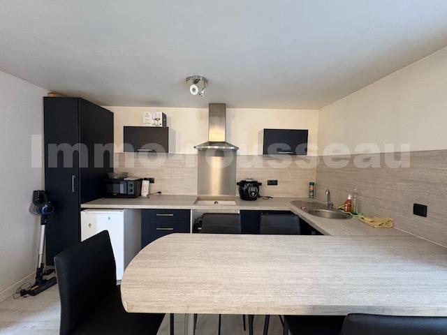 Une entrée par extérieur au premier étage, un séjour avec cuisine ouverte aménagée et équipée (hotte), ainsi qu'un WC